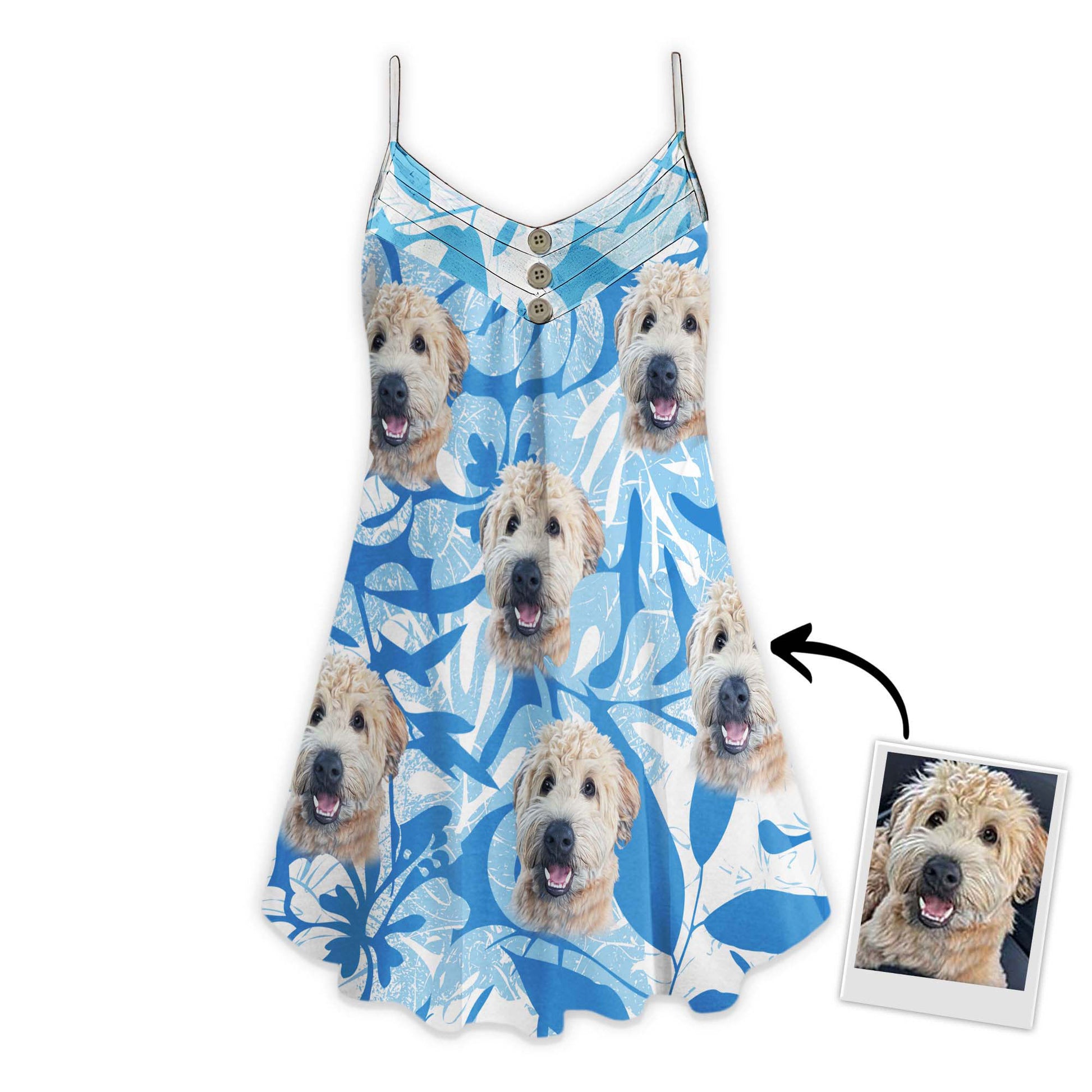 Keep your pet close to your heart with our custom cami dress, featuring a print of their playful face and adding a pop of personality to your wardrobe.