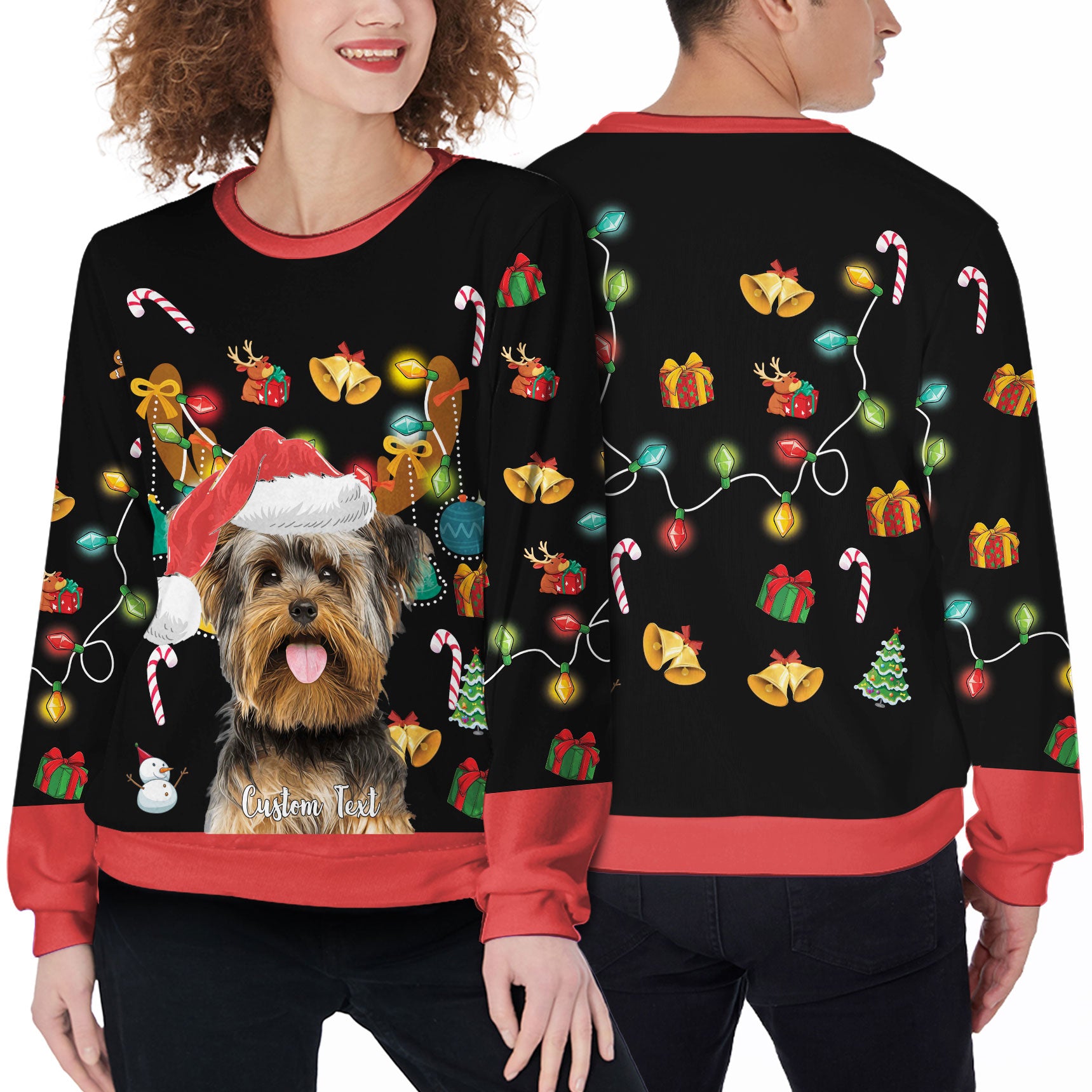 Keep your pet close to your heart with our custom sweater, featuring a print of their playful face and adding a pop of personality to your wardrobe.