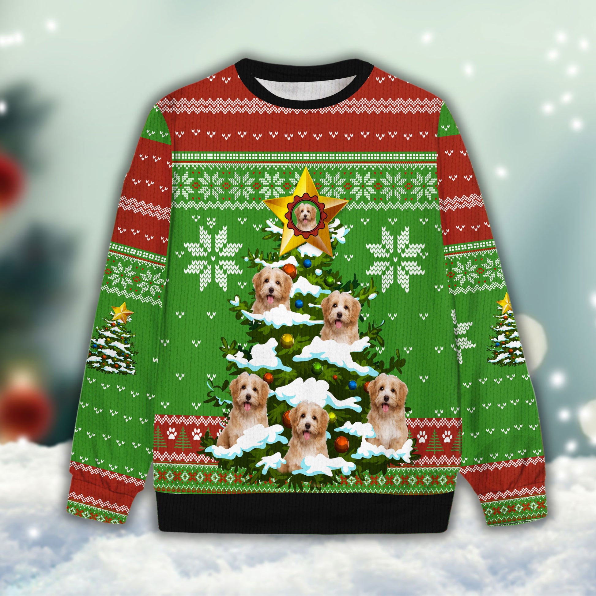 Ugly Sweater All Over Print Custom Funny Christmas Light Tree (Green & Red Color)